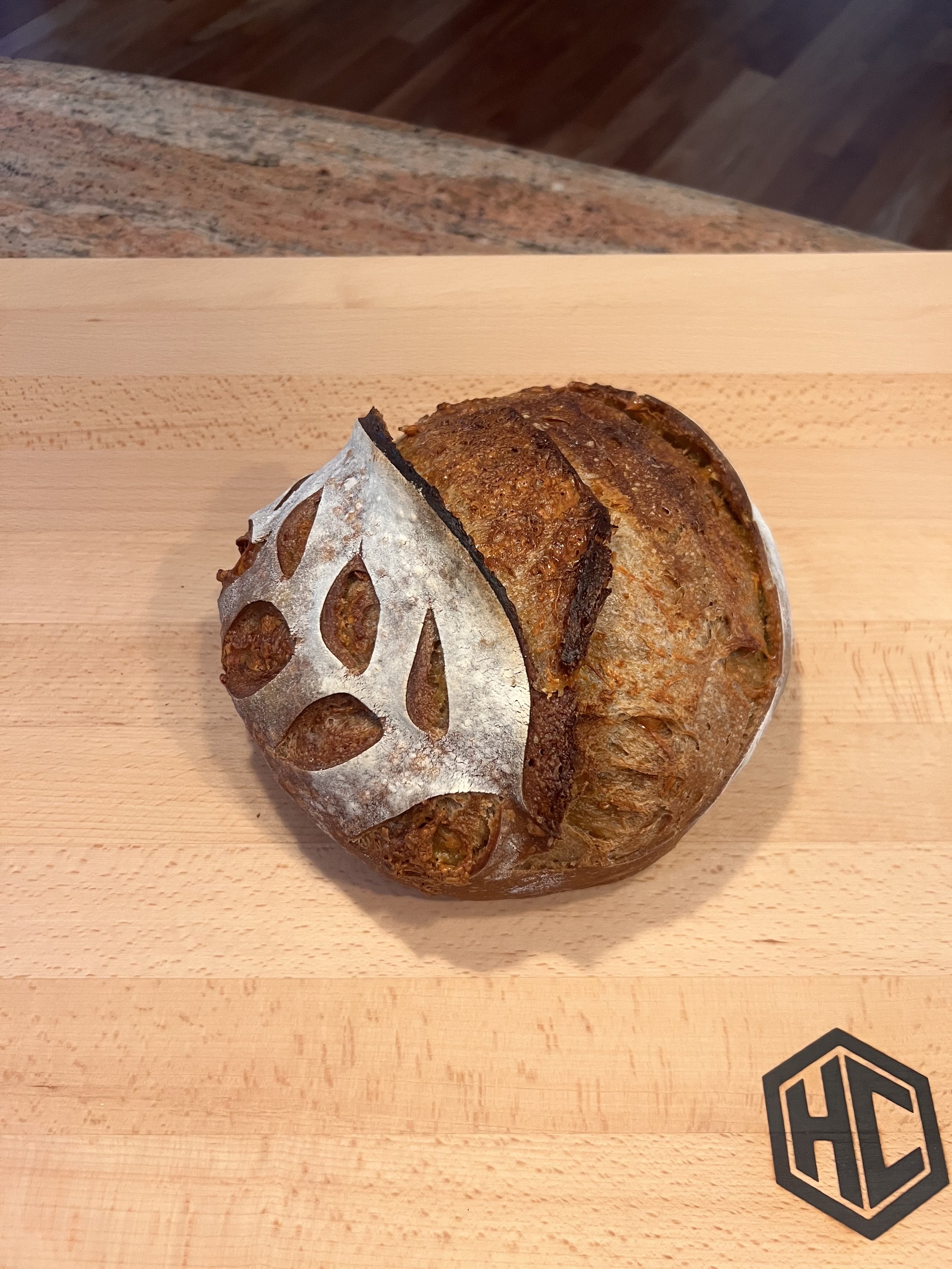 Our Guinness Gouda Sourdough is a bold, savory artisan loaf made with Guinness beer and naturally fermented sourdough starter, then generously filled with creamy gouda cheese. Baked until golden with a rich aroma and hearty crumb, this loaf pairs perfectly with soups, sandwiches, or simply toasted with butter.